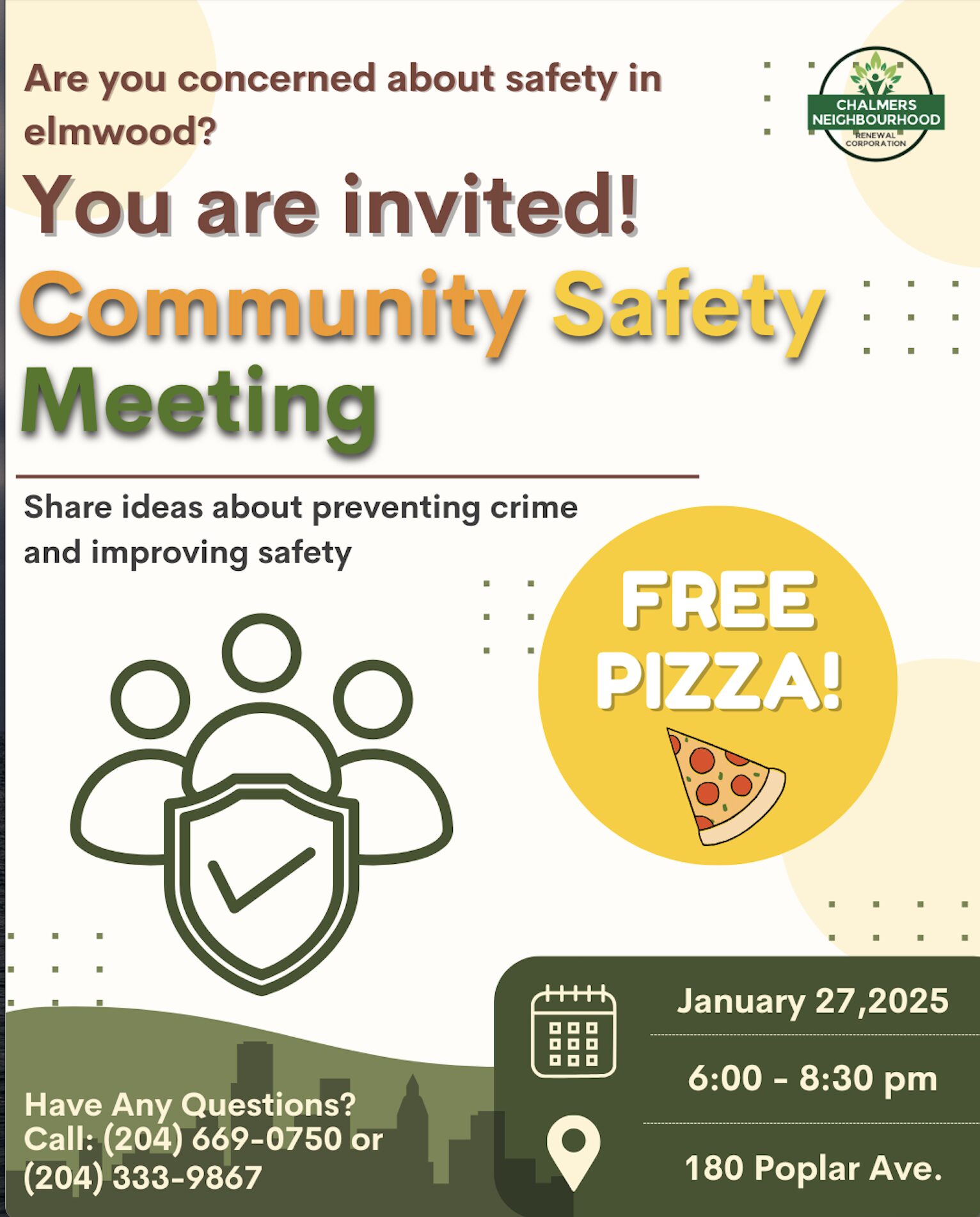 Chalmers Neighbourhood Renewal is organizing a community safety committee, and all Elmwood residents are invited.
